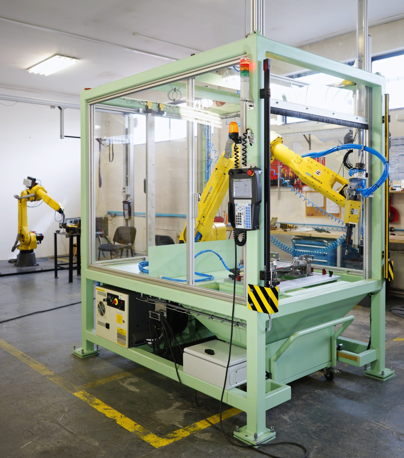 Only one worker is needed to operate this specialized workplace, which is equipped with a modern FANUC robot.